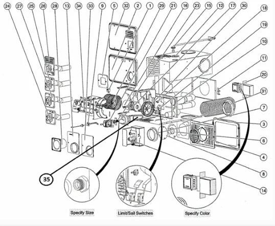 Atwood AFSD2016121 Hydroflame Rv Furnace Tune Up Parts Kit Kit #1 Is Only Applicable To Serial Numbers Before 72498929 Tune-Up Kit #1 Includes Item #9 Electrode Assembly 35100 Item #18 Limit Switch, 190?, 31091 Item #19 Sail Switch 31093 (Curved Blade) IN-STOCK Kit #2 Is Only Applicable To Serial Numbers After 72498929 Tune-Up Kit #2 Includes Item #9 Electrode Assembly 35100 Item #18 Limit Switch, 190?, 31091 Item #19 Sail Switch 33081 (Flat Blade) Tune-Up Kit #1 Includes Item #9 Electrode Assembly 35100 Item #18 Limit Switch, 190?, 31091 Item #19 Sail Switch 31094 (Curved Blade) IN-STOCK Tune-Up Kit #2 Includes Item #9 Electrode Assembly 35100 Item #18 Limit Switch, 190?, 31091 Item #19 Sail Switch 33082 (Flat Blade ______________________________ Additional Parts Available for Purchase On Our Site. Item#1 5 Amp Circuit Breaker 30320 Item#2 Black Door Assembly Kit 32344 Item#4 Front Grill Kit 30259 Item#5 Vent Adapter Door Kit 31876 Item#6 2 Inch Adapter Duct 36688 Item#7 4 Inch Adapter Duct 31474 Item#8 4 Inch Duct Cover Plate 31361 Item#9 Electrode Kit 35100 item#10 Heat Exchanger Kit 35711 Item#11 Casing Leg Kit 31244 Item#12 Gas Line Grommet 35706 Item#14 OEM Ignition Module 31501 Item#14 After-Market Ignition Module 31501MC Not Shown Manifold Inlet 32349 Item#15 Manifold Extension Kit 35712 Item#16 Blower Motor Kit 30758 Item#17 #56 Orifice 31083 Item#18 190? Limit Switch 31091 Item#19 Sail Switch 31093 (Curved Blade) Item#19 Sail Switch 33081 (Flat Blade) Item#20 Black Heat Only Thermostat 32300 Item#20 Brown Heat Only Thermostat 38452 NLA Item#20 White Heat Only Thermostat 38453 Item#21 Gas Valve Kit V1 31096 Item#23 Gas Valve Kit STR 31097 Item#23 Gas Valve Kit Top 31098 Item#24 Door Vent Kit V4 31777 Item#28 Blower Wheel 31113 Item#29 Combustion Wheel 33128 Item#32 Arctic White Door 30641 Item#32 Black Door Kit 31840 Item#34 Wiring Harness 31114 Item#35 Burner Assembly 30268