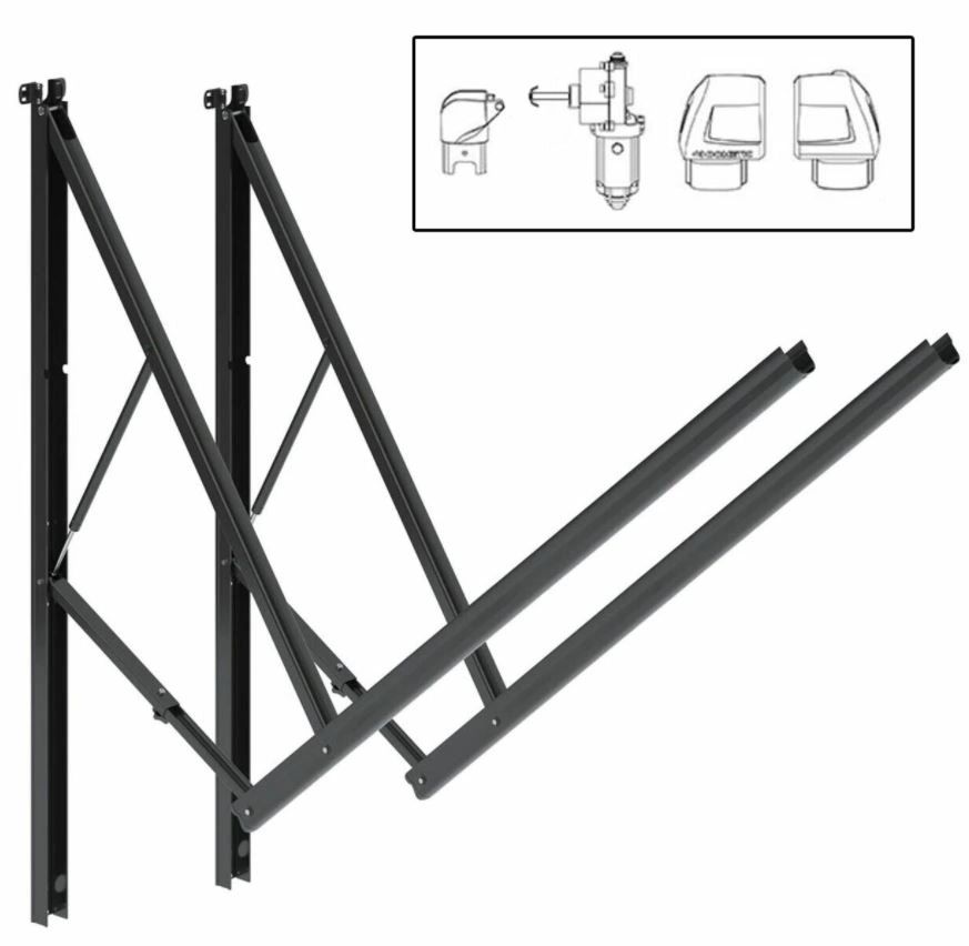 Dometic? A&E 8962002.400UL RV 9200 Power Awning Arm Hardware Kit – Standard – Black This is a set of left and right awning arm hardware for the use with Dometic 9200 Power Awnings. Typically used for new installations or as a replacement for bent or damaged awning arms. Commonly found on motorhomes or large trailers with straight sides. During manufacturing hardware frame may have a minor bow. This is not a defect. Hardware will sit flat to RV upon installation. Hardware is manufactured to be light and is designed to use the surface of the RV for strength. Additional Info Back Channel Length 65-1/2″ Projection with Awning 91-1/2″ Extension Pitch Drop 13-1/4″ Compatible with 925, 926, and 927 Series Awning Tubes What’s Included 1x Awning Arm (LH) 1x Awning Arm (RH) 1x Wire Harness (in RH Arm) LH and RH Caps Motor and Idler LED Strip light What’s Not Included Awning Tube & Fabric Awning Tube End Caps