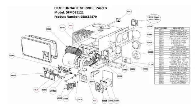 Dometic DFMD35121 Rv Furnace Tune Up Kit Kit #1 Is Only Applicable To Serial Numbers Before 72489156 Tune-Up Kit #1 Includes Item #4510 Electrode Assembly 35100 Item #4560 Limit Switch, 190 Degrees 31091 Item #4524 Sail Switch 31094 (curved blade) IN-STOCK Kit #2 Is Only Applicable To Serial Numbers After 72489156 Tune-Up Kit #2 Includes Item #4510 Electrode Assembly 35100 Item #4560 Limit Switch, 190 Degrees 31091 Item #4524 Sail Switch 33082 (flat blade) ________________________________________ LIST OF ADDITIONAL PARTS AVAILABLE FOR PURCHASE Item #4502 15 Amp Circuit Breaker 30337 Item #4510 Electrode 35100 Item #4516 Gas Valve 31098 Item #4524 Sail Switch 31094 (SN 72489156 & Below) Item #4524 Sail Switch 33082 (After SN 72489156) Item #4528 Sail Switch Mount 33053 Item #4541 OEM Ignition Board 31501 Item #4541 After-Market Ignition Board 31501MC Item #4547 OEM Blower Motor 30720 Item #4547 After-Market Blower Motor 30720MC (Not available At This Time) Item #4560 Limit Switch 31091 Item #4565 Manifold Extension Assembly 35712 Item #4575 2 Inch Duct Adapter 36688 Item #4576 4 Inch Duct Adapter 31474 Item #4577 4 Inch Duct Cover Plate 31361 Item #4581 Burner Assemble 30268 Item #4595 Orifice (#50 LP) 31078 Item #4610 Casing Leg 31244 Item #4615 Vertical Adapter Plate 30205 Item #4620 Horizontal Adapter Plate 30261 Item #4625 Blower Wheel w/ Clamp 33126 Item #4630 Combustion Wheel 33128 Item #4681 Vent Cover Panel 31367 Item #4689 Vent Panel Extension 33055 Item #4705 Door Vent Assembly 33050 Item #4755 Black Thermostat 32300 Item #4756 Brown Thermostat 38452 NLA Item #4757 White Thermostat 38543 Item #4848 Blower Housing 30751 Item #4852 Blower Housing 32444 Item #4855 Wiring Harness 33060 Item #4856 Board & Breaker Bracket 33052 Item #4865 Exhaust Adapter 33173 Item #4869 Heat Exchanger 33301