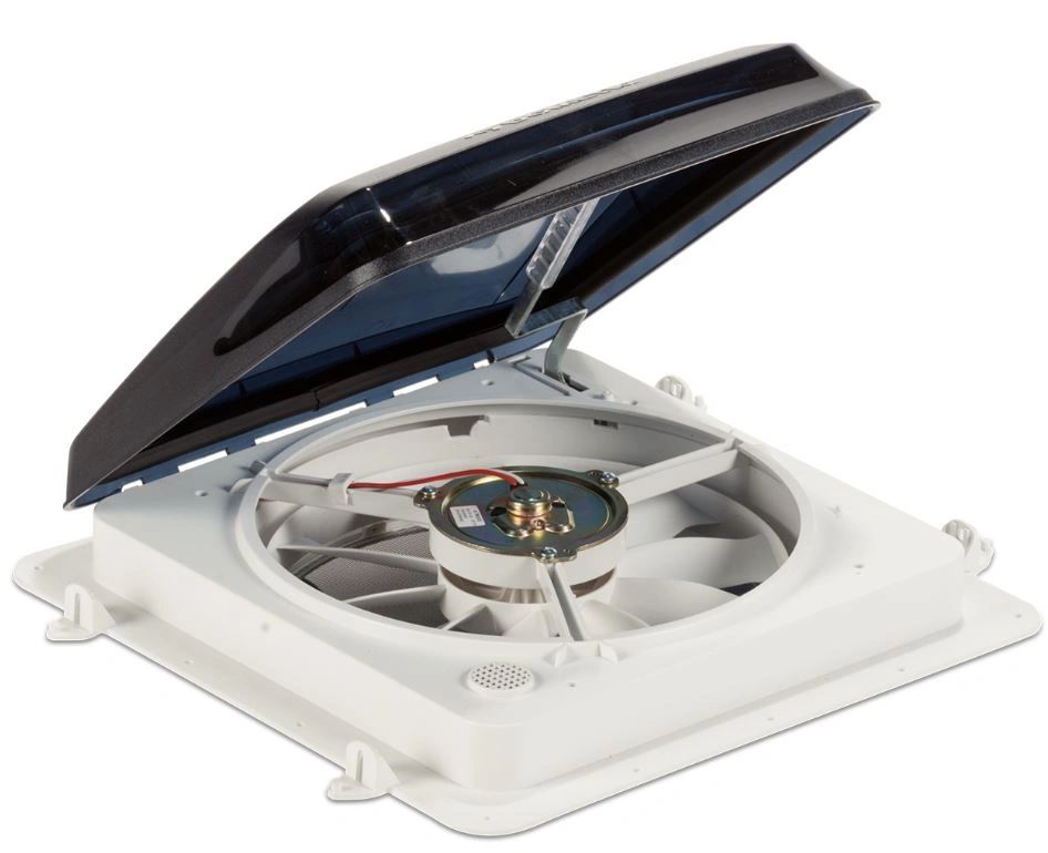 Fan-Tastic Vent 801450 Vent 3 Speed Fan Manaul Dome Lift This vent requires a cut out opening size of 14 ” X 14 ” opening in your trailer’s roof and ceiling. To replace an exisiting old vent, You simply install this vent into the existing opening after removing the other. If your Rv roof does not already have a vent, you will Want to mark and cut an opening between roof joists to install this unit properly. The Simple 2-wire design makes it easy to have your Fantastic-vent hooked up and ready for use. If you are cutting a new vent opening it is highly reccomended you Hire A Certified Rv Tech. Fits roofs 2″ to 4″ thick Garnish Height 4-1/2″ Rough Opening Size 14 1/4″ X 14 1/4″ Power Source 12V DC Fan Speeds 3 Air Flow Exhaust Only Dome Opening Style Manual This Fantastic-vent features a unique set of tabs for installing a aftermarket vent cover makes adding a cover a breeze. One of the more popular options for those who prefer to leave their roof vent open.