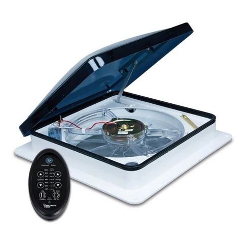 Dometic FanTastic Vent 7350 Variable Speed Fan, Automatic Dome Lift, Thermostat, Rain Sensor, Remote, Reverse The Dometic Fan-Tastic vent model 7350 features a rain sensor that automatically closes the dome when wet. The built in manual knob allows for closing the dome in the case of power loss. The powerful fan quickly moves air in and out of the cabin. 14 fixed manual speeds or automatic variable speeds Reverse switch controls the fan blade direction (OUT-exhaust or IN-intake) Rain sensor with On/Off switch and automatic dome open/close switch A built-in thermostat maintains your desired comfort level Fits standard roof window 14 in. x 14 in. Automatic lift dome Remote control with wall cradle; 2 AA batteries required
