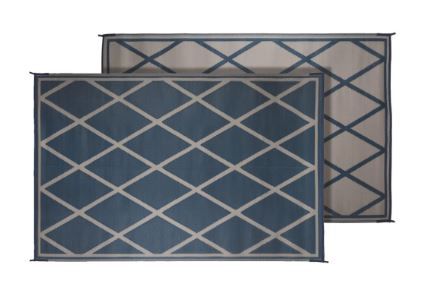 Faulkner 68912 Reversible RV Outdoor Patio Mat – Blue & Ivory Diamond Design – 9′ x 12′