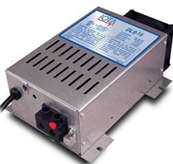 Iota DLS-15 Converter Charger The DLS 15A Power Converter/Battery Charger from IOTA converts nominal 108-132 AC voltage to 13.4 DC voltage for both DC load operation and 12V battery charging. As a power supply, the unit’s tightly controlled regulation allows the user to operate a nominal 12VDC load up to 15 amps. As a battery charger, the unit will maintain the battery, delivering its full-rated current when the battery capacity falls sufficiently low. The voltage is set to deliver its maximum current for the necessary period of time to minimize undue stress to the battery caused by heating of its cells. This helps to ensure the longest possible life of the battery. Over time, as the battery nears its full capacity, the DLS-15 will automatically drop the current, providing a float-charge to the battery to prevent self-discharge of the cells. Input Voltage 108-132 VAC Input Frequency 50-60 Hz Output Voltage 13.4 VDC Output Amperage 15 Amps