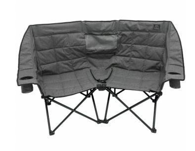 Kuma KO872-KM-KBDC-HG KOZY BEAR DOUBLE CHAIR With CENTER COOLER – HEATHER GREY Relax while keeping your drinks cool in this center cooler in the Kuma Kozy Bear Double Chair Keep your drinks close at hand with the Kozy Bear Chair! The central cooler (it fits a six pack!) provides both you and your camping buddy easy access to your drinks all night. The slightly curved chair design grants a little more shoulder space between each other and the perfect amount of heat around the campfire, it has zippered mesh pockets to store your valuable (no more lost phone!), has a padded back and armrests, and two beverage holders keeping you Kozy on all your outdoor adventures! Size 39.5″(H) x 57″(W) x 29.5″(D). Rated for 500 LBS Carry bag included.